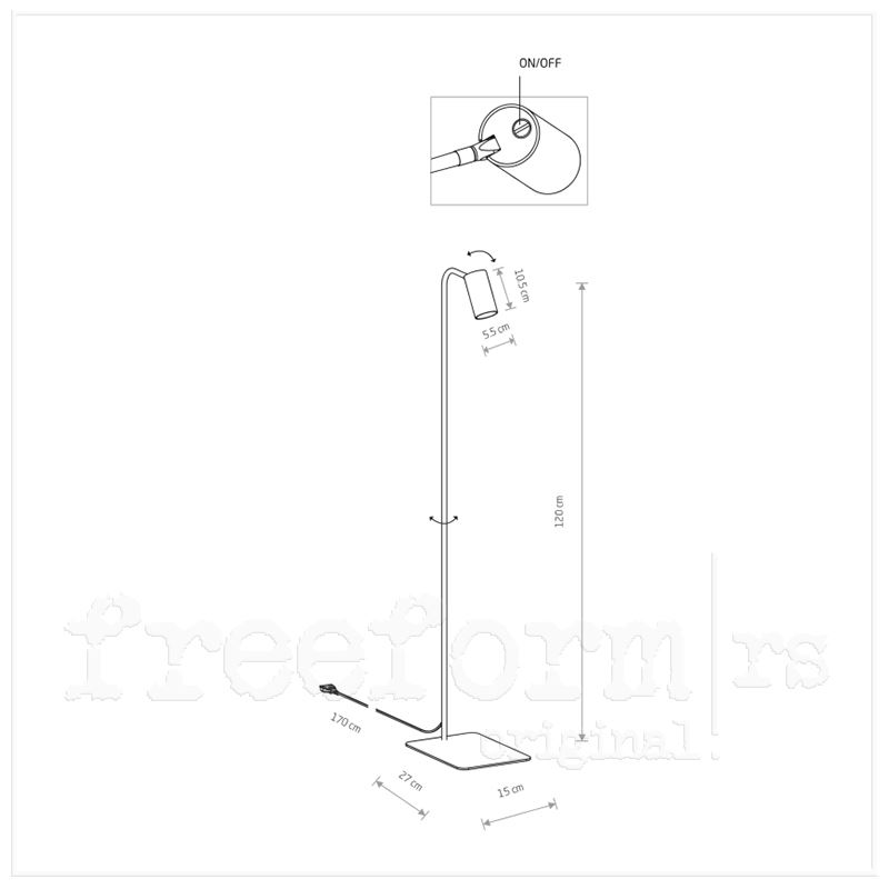 | DIMENZIJE | Visina: 120 cm | Širina: 15 cm | Dužina kabla: 170 cm | Visina/obim abažura: 10.5/5.5 cm |