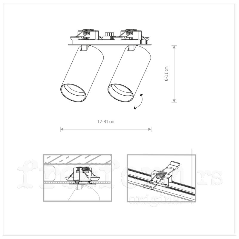 | DIMENZIJE | Visina: 6-11 cm | Visina/obim abažura: 10.5/5.5 cm | Obim ugradnog dela: 16×3.1 cm | |